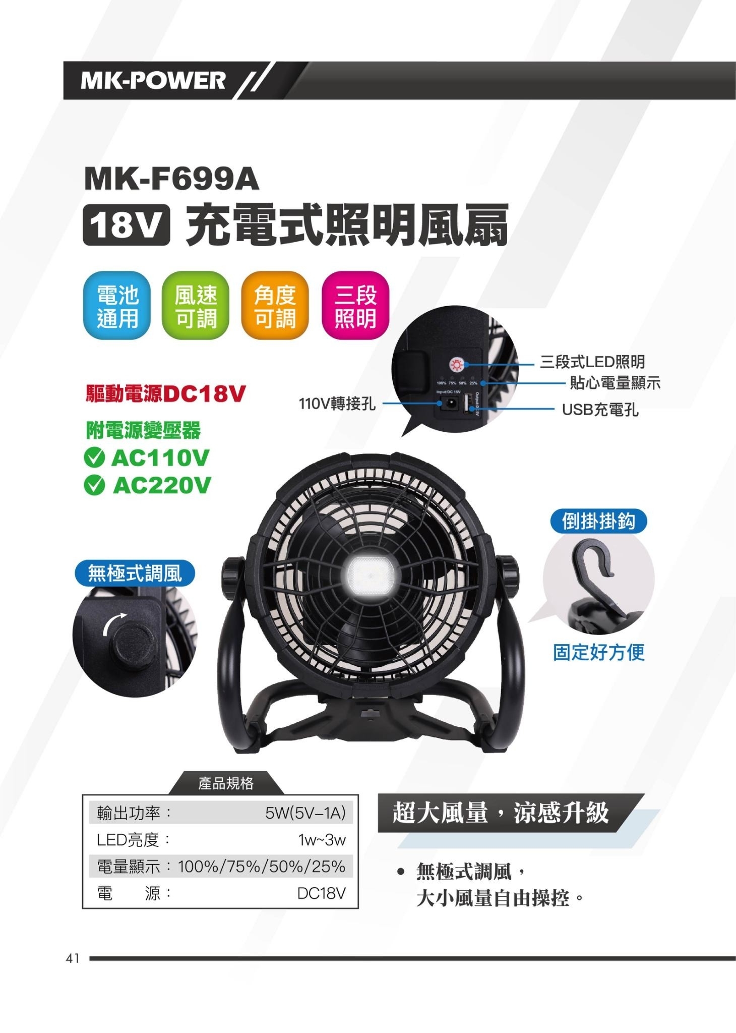 18V 充電電風扇 MK-F699A