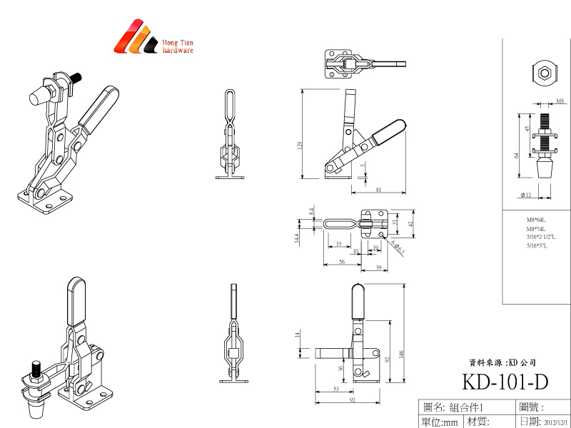型號 夾持力 把手移動角度 壓把移動 重量 零件規格 備註