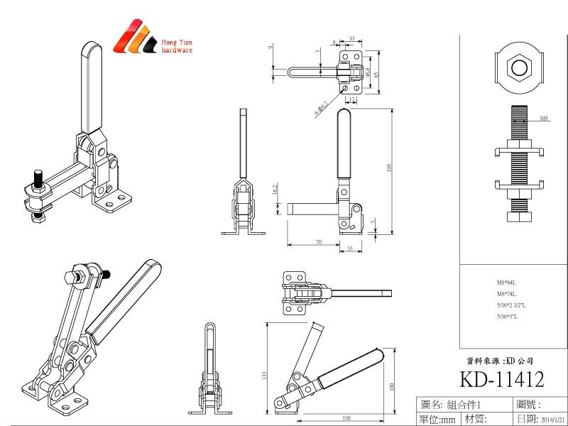 型號 夾持力 把手移動角度 壓把移動 重量 零件規格 備註