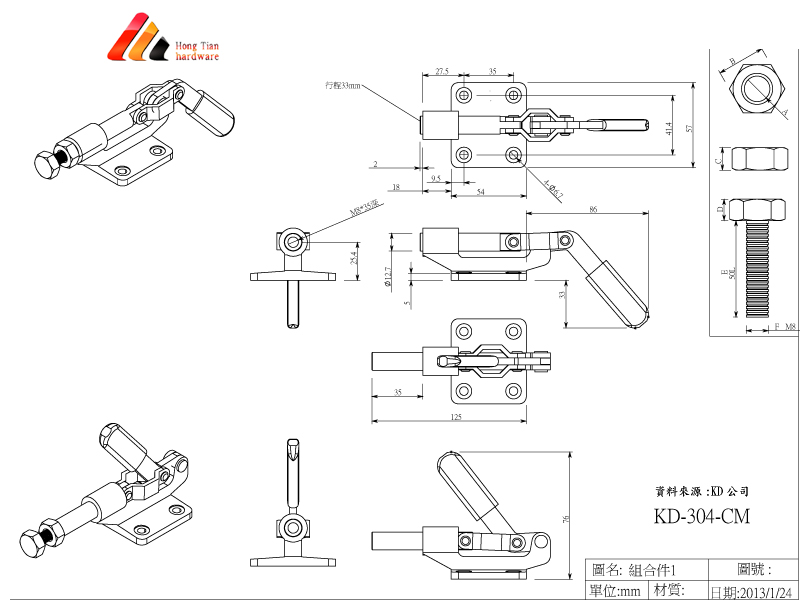 型號 夾持力 把手移動角度 行程 重量 零件規格 備註
