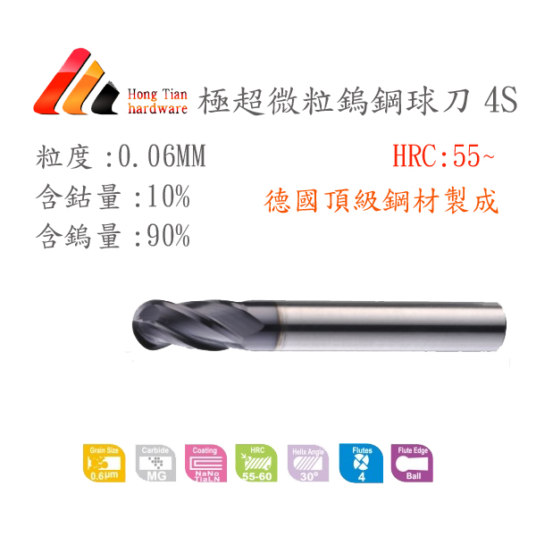 鎢鋼球型銑刀4S